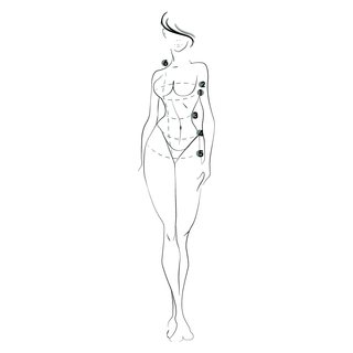 Wrap the measuring tape around the breast, more or less at the height of the nipples, wearing an unpadded bra. Keep the tape measure parallel to the floor.